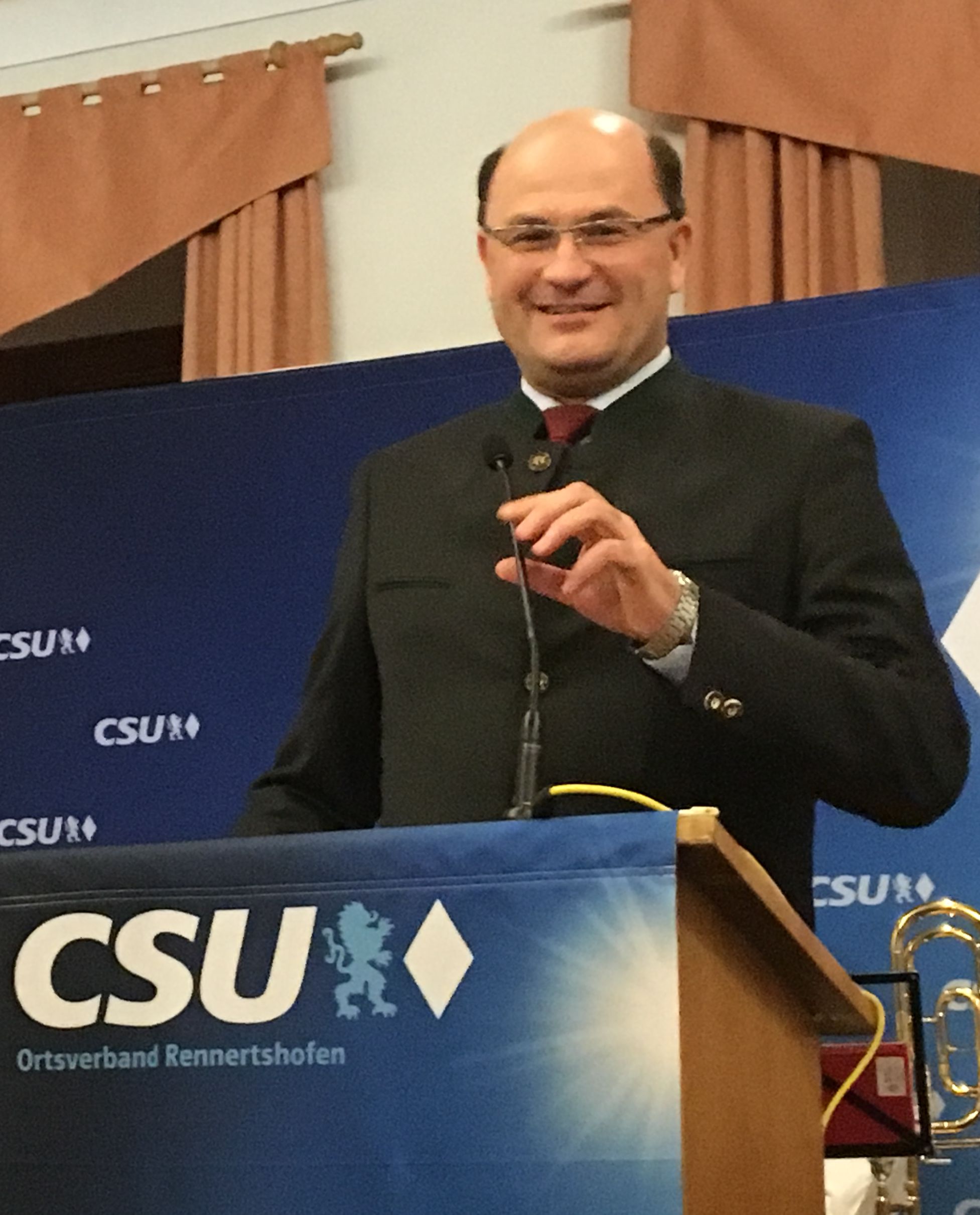 Im Anschluss hatten Bürgermeisterkandidat Georg Hirschbeck und Landratsbewerber Roland Gaßner Gelegenheit, sich dem Publikum ausführlich vorzustellen. Ihre Ausführungen wurden aufmerksam verfolgt und von den Besuchern mit zustimmendem Beifall aufgenommen. Auch die Gemeinderatskandidaten der örtlichen CSU konnten sich mit kurzen Statements anschließend persönlich präsentieren.